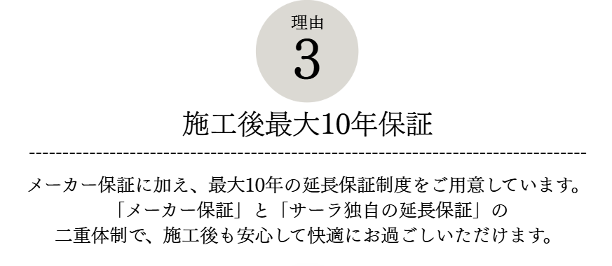 はい、リノベーション工事の施工後最大10年保証が適用されます。